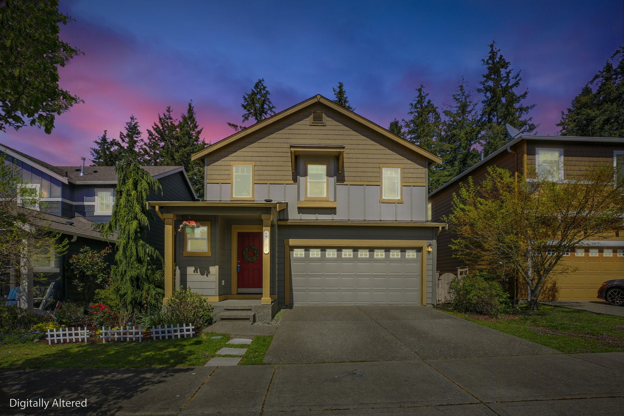 This two-story single-family residence is situated in the master-planned Meridian Campus community of Lacey. The interior features an open great-room concept with a hardwood entry, white millwork, and a functional kitchen equipped with tile countertops, rich cabinetry, and crown molding. Spanning approximately 1,525 square feet, the home includes three bedrooms and 2.5 bathrooms, with all bedrooms located on the upper level for added privacy. Notable amenities include a dedicated laundry room and a two-car attached garage. The exterior offers a fully fenced backyard that borders a quiet greenbelt, providing a secluded outdoor space. Residents benefit from a prime location within the Campus Pointe neighborhood, offering immediate proximity to walking trails, playgrounds, and several golf courses. Conveniently positioned for commuters, the property provides easy access to I-5 and is roughly fifteen minutes from Joint Base Lewis-McChord. Nearby educational facilities include Meadows Elementary, Salish Middle, and River Ridge High School.